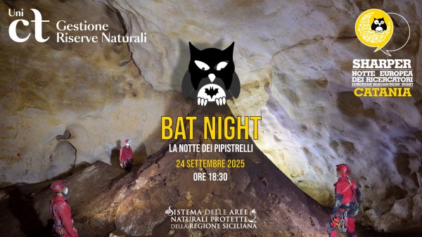 Mercoledì 24 settembre alle 18:30, alla Riserva Naturale Integrale "Grotta Palombara" di Melilli (Siracusa), si svolge "BAT Night: la notte dei Pipistrelli", evento inserito nella Sharper Night finanziato dalla Commissione Europea nell'ambito dei progetti "Notte Europea dei Ricercatori".