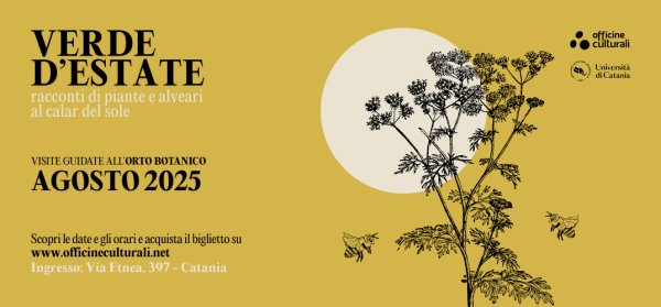 Sabato 9 e domenica 10 agosto alle 18 e alle 20, all’Orto Botanico di Catania, si svolge la visita guidata “Verde d’Estate: racconti di piante e alveari al calar del sole”, a cura di Officine Culturali.