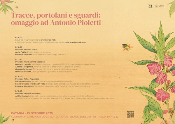 Sarà un'occasione per rendere un affettuoso omaggio alla carriera, all’impegno e alla ricchezza umana del professor Antonio Pioletti, docente emerito di Filologia romanza all’Università di Catania, già preside e fondatore dell'allora Facoltà di Lingue e Letterature straniere.