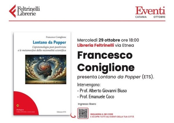 Mercoledì 29 ottobre alle 18, alla Libreria Feltrinelli di via Etnea a Catania, si presenta il libro di Francesco Coniglione "Lontano da Popper". L’epistemologia post-positivista e la metamorfosi della razionalità scientifica.