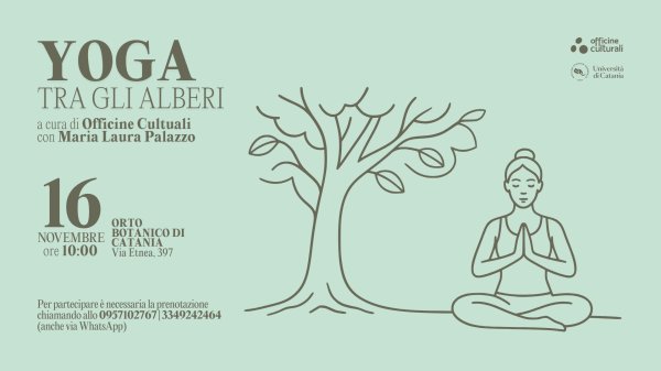 Domenica 16 novembre alle 10, all’Orto Botanico di Catania “Yoga tra gli alberi”, un ciclo di appuntamenti a cura di Officine Culturali per vivere un’esperienza che mette insieme corpo, mente e natura.