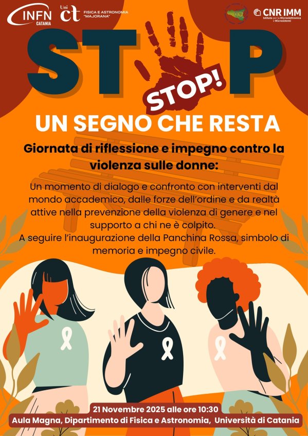 Venerdì 21 novembre alle 10:30, nell'aula magna del Dipartimento di Fisica e Astronomia, si svolge l'incontro "Un segno che resta" in occasione della Giornata internazionale per l’eliminazione della violenza sulle donne, organizzato dalla Sezione INFN di Catania