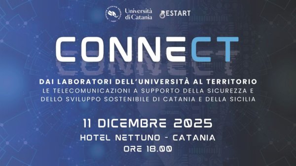 Giovedì 11 dicembre alle 18 (Hotel Nettuno, Catania), si svolge l'iniziativa "ConneCT - Dai laboratori dell’Università al territorio: le telecomunicazioni a supporto della sicurezza e dello sviluppo sostenibile di Catania e della Sicilia", evento divulgativo organizzato a conclusione del programma PNRR "RESTART - RESearch and innovation on future Telecommunications systems and networks, to make Italy more smart".