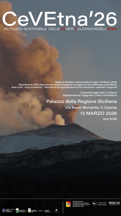 Venerdì 13 marzo alle 9, al Palazzo della Regione Siciliana (via Beato Bernardo 5, Catania), si terrà "CeVEtna ’26", l’evento dedicato al riutilizzo sostenibile delle ceneri vulcaniche dell’Etna.