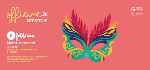 Domenica 8 febbraio alle 10:30 al Monastero dei Benedettini di Catania si svolge “Mostri Barocchi” il terzo appuntamento del nuovo ciclo di laboratori per bambini e bambine "Officine Artistiche". Quattro appuntamenti per trasformarsi in piccoli artisti e artiste alla scoperta del patrimonio culturale!