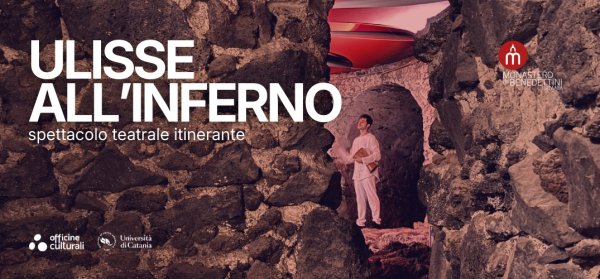 Angelo D’Agosta porta in scena il X e XI libro dell'Odissea in un luogo dal fascino antico: il “Ventre”, tra i luoghi più suggestivi dell’ex complesso monastico. Fulcro della rappresentazione sarà la Sala Rossa “Antonino Leonardi”, che con il suo caratteristico solaio rosso e il gioco di luci e ombre sulla roccia lavica costituirà un palcoscenico perfetto per la messinscena di uno spettacolo teatrale itinerante in cui il monastero dialoga con le parole e i personaggi diventando anch’esso protagonista.