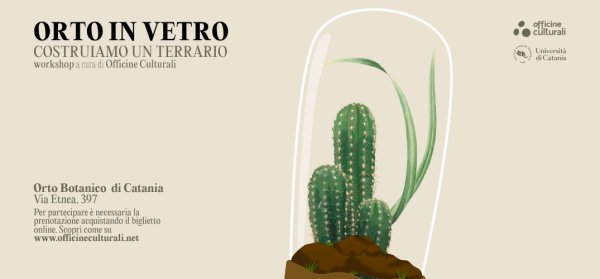 Sabato 7 marzo alle 16 e alle 18 all'Orto Botanico di Catania, si svolge il workshop a cura di Officine Culturali "Orto in vetro: costruiamo un terrario" per tutte le appassionate e tutti gli appassionati del verde.