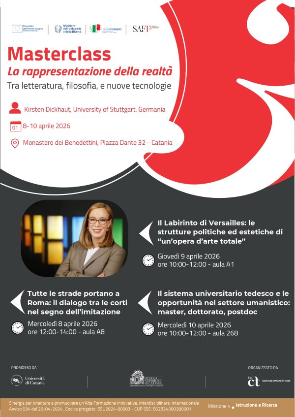 La masterclass è promossa dall’Università di Catania e organizzata dal Dipartimento di Scienze Umanistiche. La partecipazione è aperta a studenti, dottorandi e a tutti gli interessati.