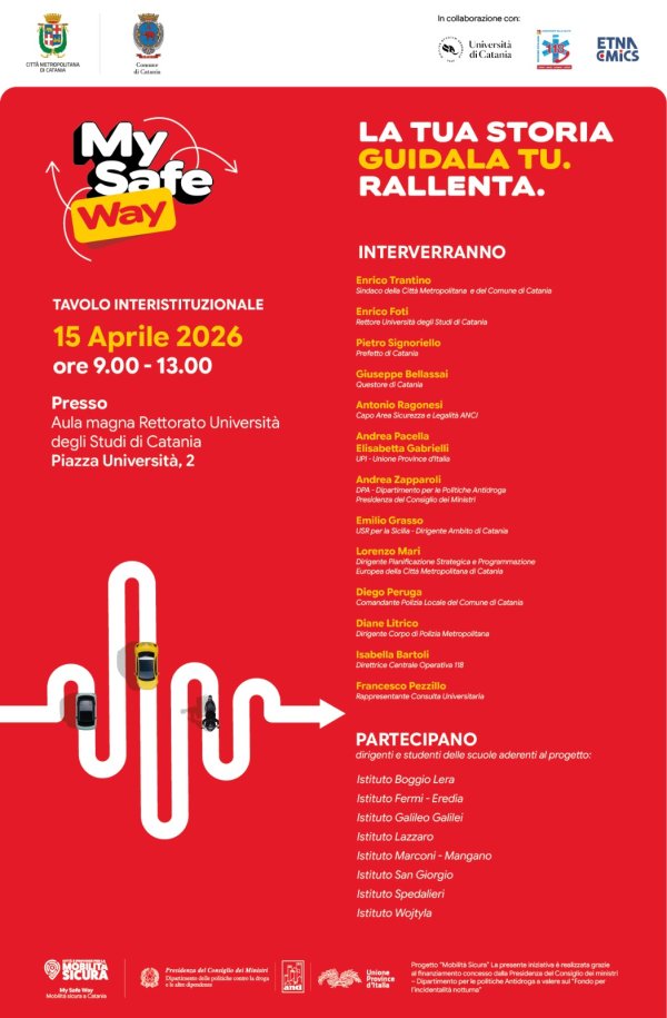 L'iniziativa, promossa dalla Città Metropolitana di Catania in collaborazione con il Comune, l'Ateneo e le principali autorità locali, si pone l’obiettivo di sensibilizzare la cittadinanza, e in particolare i giovani, sul tema cruciale della sicurezza stradale e della mobilità consapevole.