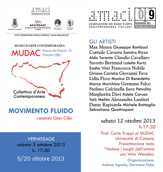 Sarà presentata la collettiva d'Arte contemporanea - Movimento Fluido, visitabile fino 20 ottobre. organizzata per la Nona Giornata del Contemporaneo, dall'Amaci – Associazione dei Musei d’Arte Contemporanea Italiani