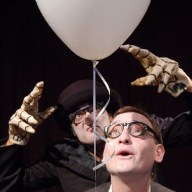 Un sogno, un incubo forse un gioco. Un cartone animato in bianco e nero, un film muto con due attori in carne e ossa. Intorno a un quadrato bianco, sintesi di una casa invisibile, si danno battaglia un uomo, il suo fedele palloncino e un dispettoso uomo nero. La singolarità di questo lavoro è la sua essenzialità e l’assenza totale di un testo. Un racconto semplice e diretto sull’eterna lotta tra bene e male, morte e vita, luce e ombra, amore e odio, tutto con leggerezza e ironia. Una favola muta sulla possibilità di far incontrare questi eterni contrari. Una fiaba noir accompagnata dalle diavolerie acustiche, eseguite dal vivo, da un musicista che scolpisce lo spazio scenico con ritmo e poesia. Definito come “