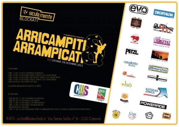 Sabato 7 e domenica 8 dicembre, al Cus Catania, si svolgerà la V edizione del “Siculamente Blockati”, il boulder contest di arrampicata sportiva tutto “siculo”.