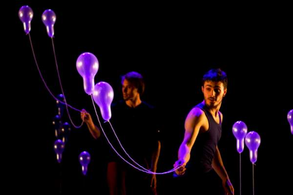 All'interno di un bosco di palloncini, un piccolo palloncino segue uno degli artisti, come se fosse un uccellino al guinzaglio, che impara a volare. Sullo sfondo, fissato al polso come un bouquet di palloncini, qualcuno sembra essere sollevato in aria. Dentro un universo immaginario e peculiare, popolato da palloncini, due artisti dialogano tra loro e con i loro oggetti. Uno spettacolo di ricerca sul controllo, il possesso e il dialogo attraverso la combinazione di manipolazione di oggetti, giocoleria, teatro fisico, acrobatica e danza, burattinai, con un pizzico di magia.