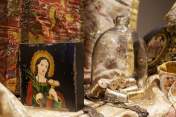 Donne, Madonne, Sante e Regine velate e svelate, anzi “Svilate”, appaiono all’improvviso nelle grotte, si coprono di ori e di luci sugli altari, si muovono al ritmo tragico e festoso della Pasqua siciliana. Questa mostra, così come una festa, si mostra e si nasconde, si offre e si ritrae, si avvicina allo sguardo e lo cattura per poi svanire nel ricordo di un bagliore e di un luccichio assordante.
