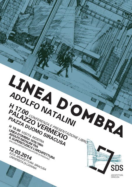 Linea d’ombra. 1978-1984: Adolfo Natalini tra il Superstudio e l’Architettura (a cura di Marco Navarra con Claudia Cosentino, Dario Felice, Antonio Rizzo, Lettera Ventidue Edizioni e Scuola di Architettura di Siracusa, 2012) - è un montaggio critico di materiali inediti; mostra, sotto una luce diversa, gli anni di passaggio dagli “astratti furori” dell’Architettura radicale alla pratica della costruzione. Tra il 1978 e il 1984 si compie nel percorso di Adolfo Natalini un’accelerazione raccontata nel libro “Figure di pietra”: l’intreccio tra le prime esperienze dirette di cantiere, i primi progetti nelle città storiche e una viva tensione teorica e concettuale produce una pratica dell’architettura di forte innovazione. Un’architettura plurilinguistica di gaddiana memoria compone lingua alta e dialetti in nuove configurazioni che hanno la forza dirompente di scardinare luoghi comuni o consolatorie messe in scena.