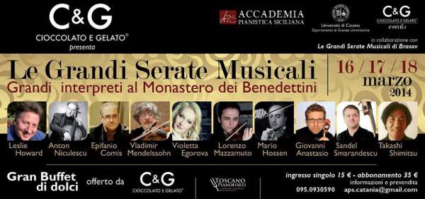 Organizzato da "C&G Cioccolato e Gelato" e Accademia Pianistica Siciliana, in collaborazione con il Dipartimento di Scienze umanistiche dell’Università di Catania, il festival ospiterà nell'aula magna "Santo Mazzarino" grandi nomi del concertismo internazionale per tre serate all'insegna della grande musica.