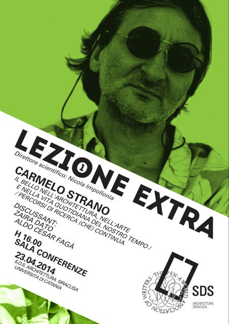 - Il bello nell’architettura, nell’arte e nella vita quotidiana del nostro tempo. Percorsi di ricerca (che) continua: Mercoledì 23 aprile alle 16 (sala conferenze, Scuola di Architettura, Siracusa), primo appuntamento del ciclo "Lezioni Extra" (23 aprile 2014)