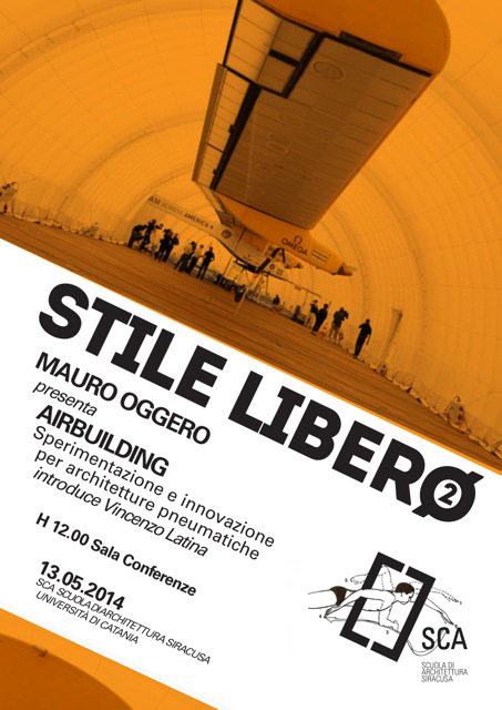 - Airbuilding. Sperimentazione e innovazione per architetture pneumatiche: Martedì 13 maggio alle 12, nella nuova caffetteria della Scuola di Architettura di Siracusa, conferenza di Mauro Oggero per il secondo appuntamento del ciclo “Stile Libero” (13 maggio 2014)
