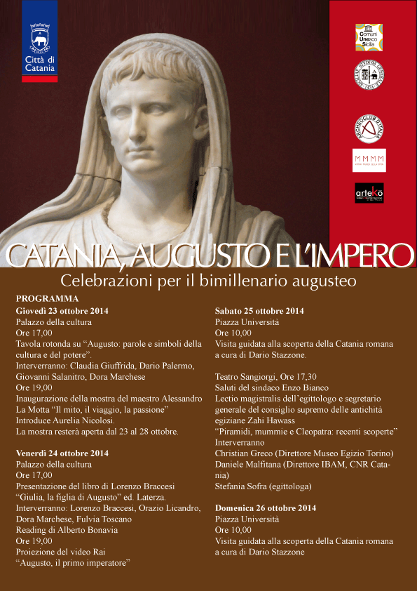 Dal 23 al 26 ottobre, la città di Catania organizza le celebrazioni per il bimillenario augusteo, con una quattro giorni di eventi culturali, dal titolo Catania, Augusto e l'’Impero. L'ingresso è libero.
