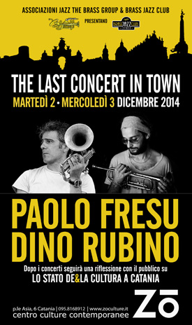 Martedì 2 e mercoledì 3 dicembre, al Centro Zo, si terrà il concerto di Paolo Fresu & Dino Rubino, The last concert in town, a conclusione dell'attività concertistica del Brass Jazz Club.