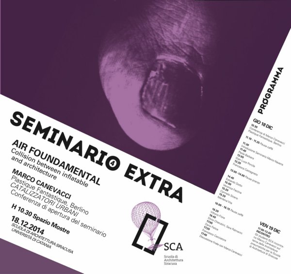 Giovedì 18 dicembre alle 10:30, nello spazio mostre della Scuola di Architettura di Siracusa (piazza Federico di Svevia), si terrà Air Fundamental_Collision between inflatable and architecture, quarto incontro del ciclo “Seminario Extra”.