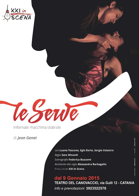 Venerdì 9 e sabato 10 alle 21, e domenica 11 gennaio alle 17:30, al Teatro del Canovaccio di Catania, la rassegna teatrale XXI In Scena, promossa dall'associazione culturale Etna N'Geniousa, inaugura la stagione 2015 con uno degli spettacoli di maggior successo della sezione "Repertorio": Le serve di Jean Genet, ideato e riadattato da Saro Minardi.
