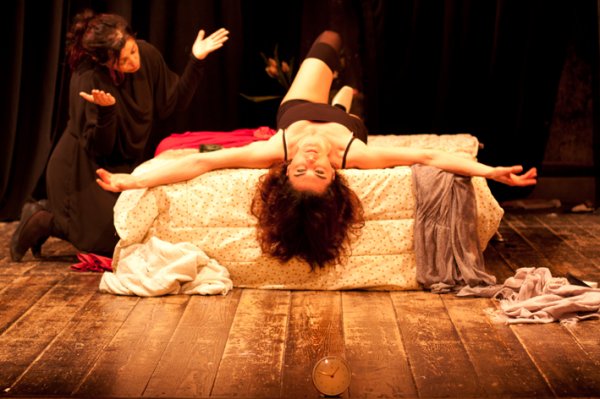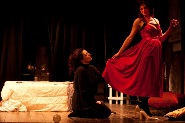 Il senso di inquietudine inizia dall’ingresso in sala: le luci spente, solo il palco di questo grande atto unico illuminato torpidamente. Silenzio, poi buio totale. Le voci assatanate di due donne invadono lo spazio e il dramma ha inizio. L’addattamento di Saro Minardi è una continua e incalzante stimolazione a cinque sensi. Le serve è uno spettacolo spiazzante per i continui capovolgimenti, dai ruoli degli attori, stravolti insistentemente, al finale inaspettato ma aspettato, dove tutta la follia del pezzo si rivela.