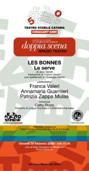 Les Bonnes (Le serve) di Jean Genet: uno spettacolo di Giuseppe Marini, con traduzione di Franco Quadri, scene di Alessandro Chiti, costumi di Gianluca Falaschi, musiche Marco Podda, luci di Gigi Ascione. Gli intepreti sono: Franca Valeri, Annamaria Guarnieri, Patrizia Zappa Mulas.