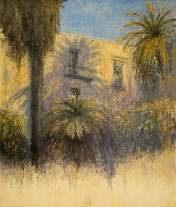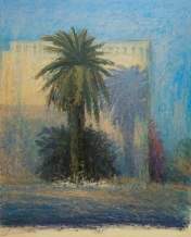 Il tema è il paesaggio, anzi il paesaggio Siciliano, la campagna, la casa padronale, le mura di cinta dove si arrampicano rigogliose buganvillee fiorite di lacche rosse, e soprattutto la palma, protagonista e simbolo della fascinosa Sciacca araba che egli ama.