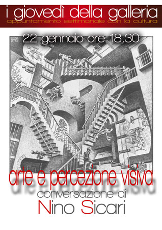Giovedì 22 gennaio alle 18:30 alla GalleriaRoma (via Maestranza, 110 - Siracusa) si terrà un incontro culturale a cura di Corrado Brancato dal titolo Arte e percezione visiva. La presentazione è a cura di Salvatore Zito. Il relatore è Nino Sicari. L'ingresso è libero.