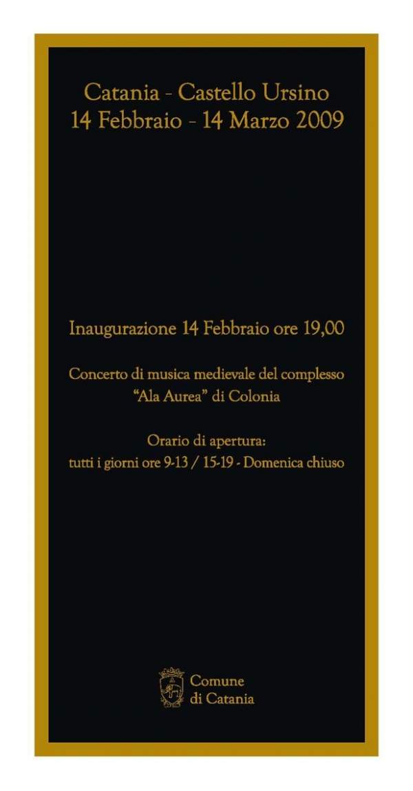 Info: MUSEO CIVICO CASTELLO URSINO - Piazza Federico di Svevia 98, Catania – tel. +39 095 7428036 / 334 9821594 - gmargani@inwind.it.