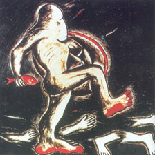 Enzo Cucchi, uno dei pittori di spicco dell'epoca contemporanea, si avvicina alla pittura da autodidatta, vincendo anche numerosi premi. Verso la metà degli anni '70, nel suo continuo viaggiare verso Roma incontra il noto gallerista e critico Mario Diacono, con il quale inizia una serie di esposizioni anche negli Usa : di quell'epoca sono leprime collaborazion con gli artisti Sandro Chia e Francesco Clemente, coi quali lavora a stretto contatto. Nel 1977 Enzo Cucchi presenta nel 1977 una istallazione di disegni agli Incontri internazionali d'Arte. Nello stesso anno tiene a Milano la sua prima mostra personale presso la galleria di Luigi De Ambrogi.