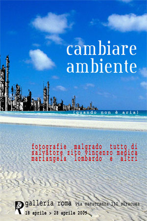I luoghi dove non si andrebbe mai a trascorrere una vacanza, i posti dove non ci si augurerebbe mai di andarvi a lavorare, l’habitat dove non si farebbero mai crescere i propri figli, tutto ciò è qui a casa nostra in un concentrato di ecomostri e di incuria in cui le persone convivono insieme al mare violato, alla terra violata, all’aria e all’acqua violate, in un fatale, lento e crudele convivio. Se si potesse, sarebbe meglio cambiare aria. (Salvatore Zito - Galleria Roma)