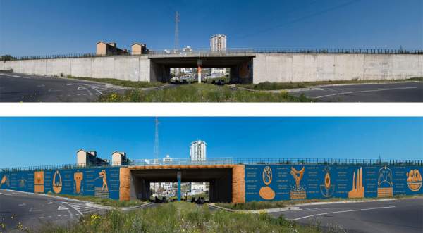 La Porta della Bellezza è composta da 15 opere monumentali di artisti nazionali e consiste in 9000 forme di terracotta. Le opere abbinate ad altrettanti testi poetici, saranno applicate lungo 500 metri di un muro di cemento (3 km) che attraversa il quartiere. L’insieme delle opere si ispira alla tematica della Grande Madre.