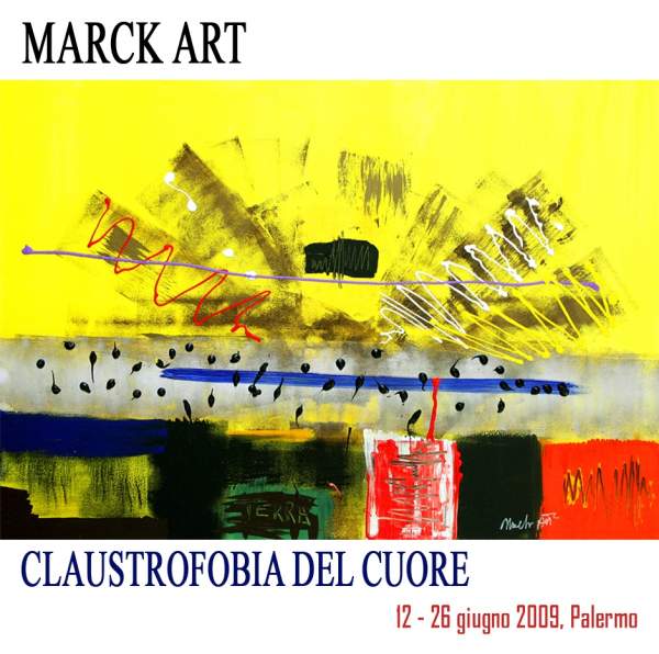 Venerdì 12 giugno alle 19 allo Spazio Bquadro (via XII gennaio, 2 - Palermo) si inaugura la mostra pittorica Claustrofobia del Cuore di Marck Art a cura di Tanino Bonifacio (storico dell'arte). La mostra resterà aperta dal martedì al sabato sino al 26 giugno, dalle ore 10 alle 12 e dalle ore 17 alle 19.