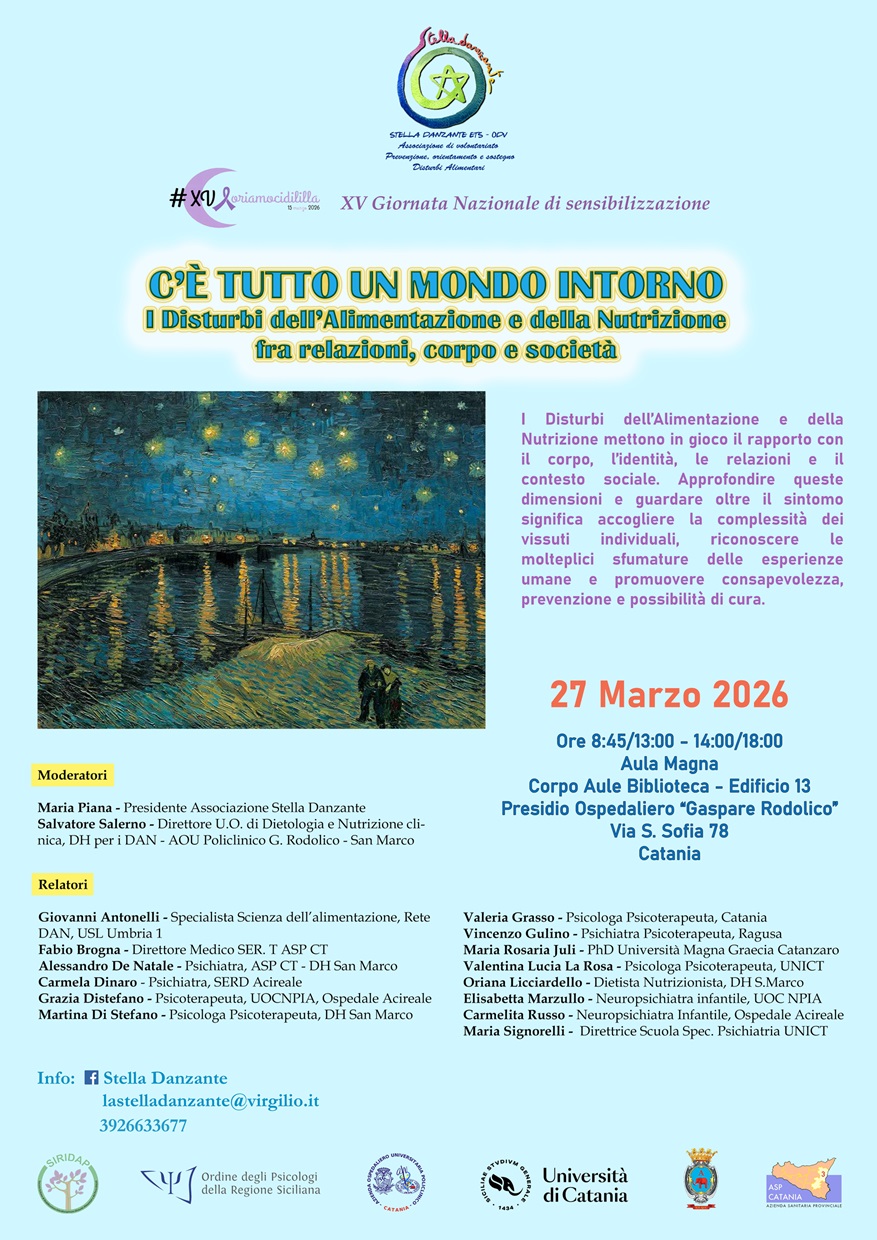 Venerdì 27 marzo 2026 - ore 8:45 - aula magna, Edificio 13, P.O. "Gaspare Rodolico" - convegno in occasione della Giornata nazionale dedicata ai Disturbi del Comportamento Alimentare