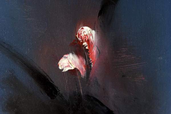 Sondare, esplorare, attendere (le immagini appaiono, arrivano, con un loro tempo)… Sapere agganciare l’occhio a cortine di fumo, nuvole o sipari di nulla fu ciò che rese celebre Turner, e forse perfino in questo primo 2000, così violentemente saturo, vale la pena riproporre il valore eccezionale di quell’alleggerimento. Potrebbe essere il risvolto “saggio”, nonché attuale, necessario, del tipo di pittura che Grasso propone e che lavora sull’impermanenza delle cose, viventi o meno: niente pare che si fermi, ma tutto è in continuo trasferimento, dal fondo verso le braci della superficie, verso i lati, e ancora, di nuovo, verso il fondo. Questo anche se vorrei comunque che si leggesse la rifinitura di certi dettagli, la precisione di focalizzazioni improvvise, perfette tra le striature e i flash (un petalo, una mano, una nicchia di pietra), rese quasi allo scopo di percepirne più intensamente il disfacimento, il congedo. Ciò che ci resta è la persistenza di un’energia? E’ già molto, è l’essenziale.[…] Marco Di Capua