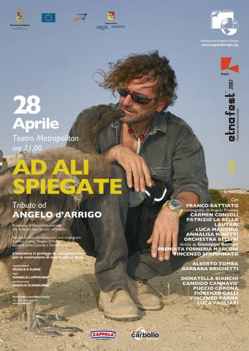 - Etnafest | Ad ali spiegate - Tributo ad Angelo D'Arrigo: Sabato 28 aprile alle ore 21 al Teatro Metropolitan si svolge una serata dal titolo "Ad ali spiegate -Tributo ad Angelo D'Arrigo" per il cartellone di Etnafest Arte (28 aprile 2007)