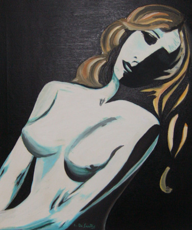 Possiamo affermare, dunque, che nelle tele della De Santis c’è lo snodarsi di un linguaggio artistico che si pone in atteggiamento di ascolto del Sé per meglio rappresentare un magistrale verismo pittorico racchiudente motivi visivi e razionali. Non passa inosservata la trasposizione delle forme e dei colori in libertà di pensiero, grazie a cui lo spirito rinasce e trova la sua facoltà di espressione, trasformando i simboli in messaggi. Spirito e Natura hegelianamente si identificano, il finito diventa infinito e si compie magicamente una ideale identificazione di artista e fruitore in una superiore unità metafisica, perché, come scrive Jacques Lacan, “Il quadro, certo, è nel mio occhio. Ma io sono nel quadro”.