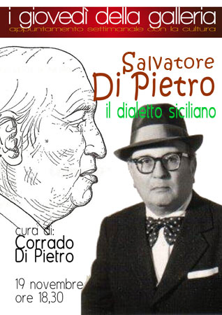 Giovedì 19 novembre alle 18:30 alla Galleria Roma (via Maestranza 110 - Siracusa) si terrà incontro culturale dal titolo Salvatore Di Pietro - Il dialetto siciliano, a cura di Corrado Di Pietro. L'evento sarà presentato da Salvatore Zito. L'organizzazione e la direzione sono a cura di Corrado Brancato. L'ingresso è libero.