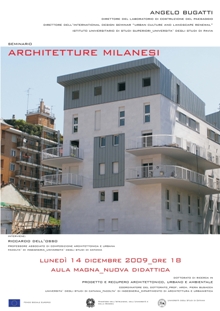 Lunedì 14 dicembre alle 18, nell'aula magna del nuovo edificio per la didattica della facoltà d'Ingegneria (viale A. Doria 6), il prof. Angelo Bugatti, ordinario di Composizione architettonica e urbana dell'Università di Pavia terrà un seminario sul tema Architetture milanesi, nell'ambito del dottorato di ricerca in Progetto e recupero architettonico, urbano e ambientale, coordinato dalla prof.ssa Piera Busacca.