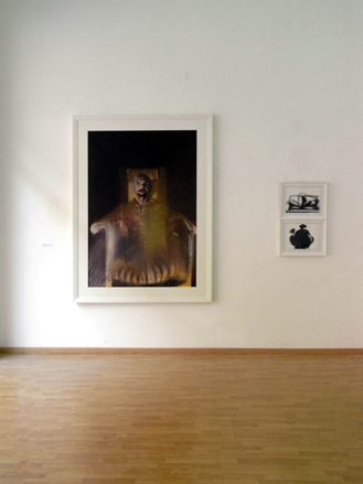 La linea d'ombra: una confessione, il titolo di uno dei più potenti romanzi del secolo scorso, scritto da Joseph Conrad, potrebbe essere il sottotitolo di questa nuova mostra di Calusca. Quelle pagine come queste opere narrano un limite, indefinibile, inafferrabile, inquietante, che per tutti, a un certo punto, segna in modo irrevocabile la fine della giovinezza. Così, i protagonisti di queste storie decidono di prendersi delle responsabilità, nel viaggio verso la maturità, di confessarsi in prima persona. La Figura nell’ombra (tecnica mista su carta fotografica, 2004) ci guarda, con l’occhio che gli rimane, le braccia incrociate su una immaginaria spalliera di sedia girata, come nei film durante gli interrogatori della polizia, per cominciare il suo racconto. Il confine tra ciò che è stato, che non è più e svanisce risucchiato dal tempo, e ciò che rimane e continua: è là dentro. Quella è la linea, la linea d’ombra, nel segno del nero che esalta il bianco per contrasto, nel terrore, nella meraviglia, nella sconfitta, nella gioia, dentro molti degli inchiostri, dei monotipi, dei pastelli su carta fotografica e dei due oli su tavola, Man/chair – M.G. with five white buttons e V52 - il complesso di Eureka, qui esposti. Eureka! è l’urlo di un’intuizione che diventa scoperta e i cinque bottoni sono tutto quello che resta dell’uomo in camicia. Sembrerebbero fantasmi come alcuni personaggi di Conrad ma, questi come quelli, non lo sono. Lo scrittore sosteneva che “ci sono misteri e meraviglie a sufficienza nel mondo reale per andare a scomodare le follie del soprannaturale” e, come il pittore, lo dimostrava con l’inchiostro. Gli inchiostri, che un tempo erano uso esclusivo dei letterati, ancora di più in pittura richiedono una tecnica precisa che non concede correzioni. Anche i monotipi, stampe in esemplare unico realizzate su una lastra e poi impresse su carta, presuppongono una grande padronanza del gesto e pochi ripensamenti. Il colore premuto può spandersi in maniera non del tutto prevedibile e l’immagine non corrisponde esattamente a quella originaria, risulta capovolta come nell'incisione. Immagine capovolta come allo specchio. Immagine che è riflessione dell’artista. Proprio in uno specchio, che sembra il cubo di una televisione, si riflette un narciso dell’ultima generazione, dopo tutti i suoi predecessori illustri che, dentro pozze d’acqua limpida, prima di lui, si ritrovavano infelici, capaci d’amare solo se stessi (Narciso, tecnica mista su carta fotografica, 2004). Già i pionieri della fotografia avevano usato la foto al servizio della pittura, allo stesso modo Calusca interviene trasformandola in immagine pittorica, introducendo il colore rosso che in alcuni casi investe in uno schianto il bianco/nero. La Storia dell’Arte è fatta di grandi, grandissimi, debiti. E il modo migliore per pagarli, forse, è riconoscerli. Gli uomini in camicia bianca e cravatta nera di Calusca, gli omologati impiegati modello, gli inquietanti uomini di chiesa, i visi scomposti, le bocche urlanti, le nudità della carne, le sedie a scomparsa... non esisterebbero senza Francis Bacon. Così, la scomposizione dei volti di Bacon non esisterebbe senza le deformazioni cubiste di Picasso e nemmeno queste sarebbero state le stesse senza le maschere tribali arrivate in Europa dall’Africa. Certo è che ognuno di questi viaggi ci riporta a noi stessi e al cuore di tenebra dell’umanità. L’umanità sfocata, dilatata, trasfigurata, formalmente e psicologicamente, giunta ai nostri giorni e raccontata, come in confessione, da un Calusca più maturo. E, valicata la linea d’ombra, Conrad ci soccorre di nuovo, con un altro dei suoi racconti, Il nero del Narciso (che è anche il nome della barca con cui si recò a Bombay, oltre che il titolo di una delle opere più significative di questa mostra): l’artista cerca “di farvi ascoltare, di farvi sentire... ma prima di tutto di farvi vedere. Questo è tutto, e nulla più”. Se ci riuscirà, “troverete qui, secondo i vostri desideri: incoraggiamento, consolazione, paura, fascino - tutto quello che domandate - e, forse, anche quello scorcio di verità che avete dimenticato di chiedere”. (Mercedes Auteri)