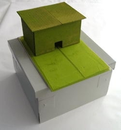 Vengono esposte inoltre alcune sculture realizzate in cartone immerso nell'inchiostro di china, anch'esse concepite in relazione al disegno e rappresentanti modelli architettonici senza finalità. La base su cui sono esposti è al contempo scatola-contenitore e rimanda a una relazione tra il vuoto e il pieno.