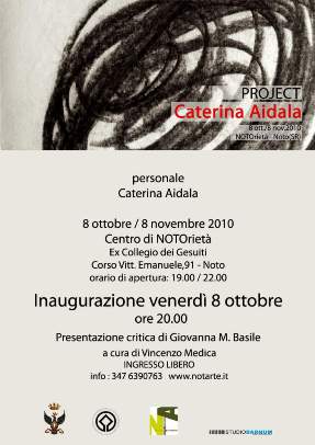 Venerdì 8 novembre alle 19 al Centro di Notorietà / Ex Collegio dei Gesuiti (Corso Vittorio Emanuele, 91 - Noto) la Città di Noto, Assessorato al Turismo, l'Unesco - Patrimonio dell'Umanità, NotArte artisti associati del Val di Noto e lo Studio Barnum contemporary presentano Project, personale di pittura di Caterina Aidala. La mostra, visitabile fino all'8 novembre, è a ingresso libero.