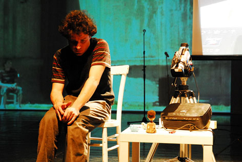 My Arm è il monologo di un trentenne che ha sfidato se stesso e le proprie possibilità, la propria noia e quella universale: dopo aver dimostrato di riuscire a stare per quattro mesi senza andar di corpo e per un periodo più o meno ugualmente lungo senza parlare, un giorno porta un braccio sopra la testa e prova a verificare per quanto tempo riuscirà a tenercelo…e ora vive e muore del suo braccio reso inattivo, arto ucciso, ma insieme unico superstite del resto del corpo. "L'uomo del braccio" racconta la sua storia prendendo a prestito dagli spettatori foto, chiavi, accendini che raffigurano luoghi o personaggi cui però non rimandano affatto, e che diventano scenario e protagonisti di un suo spettacolo personale (ripreso in live da una telecamera e videoproiettato): ecco un teatro ulteriore, un mondo ulteriore e un linguaggio che raccontano una storia tanto vera e per questo impossibile, manipolando la realtà e mettendola a servizio di una rappresentazione che però non ha nulla da raccontare.