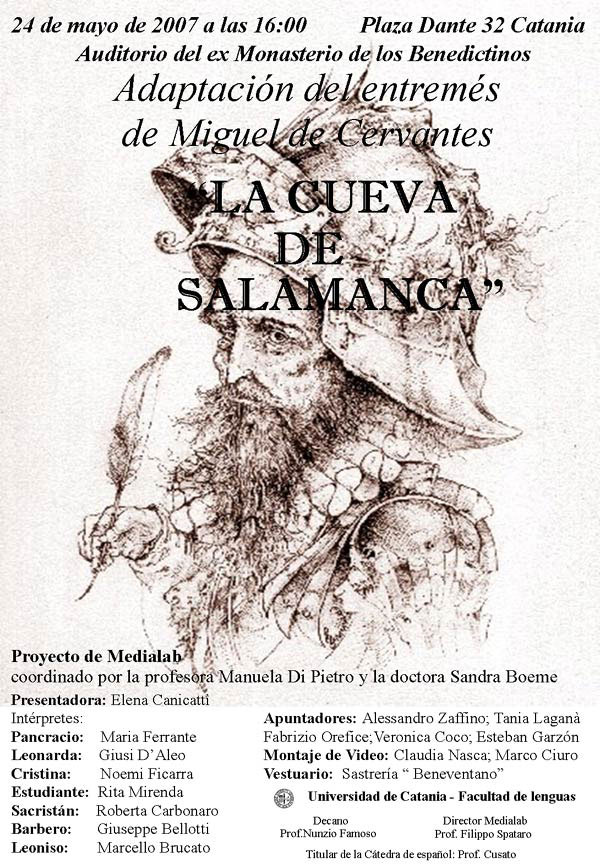 Si tratta della commedia La cueva de Salamanca, di cui il Medialab 2007 “Teatro in lingua spagnola”, coordinato dalle docenti Manuela Di Pietro e Sandra Boeme ha predisposto un adattamento scenico.