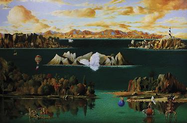 Salvo Russo - L'opera di Salvo Russo è un universo culturale denso di richiami alla tradizione popolare, alla novellistica, al mito, quello che elabora nelle sue raffinate composizioni, non trascurando di sottolineare di volta in volta le connessioni simboliche che conferiscono a quei temi un significato profondo. Le associazioni mai scontate fra personaggi e oggetti che attendono a modi diversi e non sempre facilmente conciliabili si colorano nella sua opera di simbologie arcane di grande suggestione, dando consistenza alle percezioni intuitive e parvenza di realtà al mondo onirico, senza mai sconfinare nel surreale, ma anzi continuamente richiamando il vissuto. Salvo Russo appare come il degno discendente di una stirpe che tanto ha contribuito alla formazione della civiltà occidentale. E' nato ad Acicastello (Ct) nel 1954. È docente di pittura presso l'Accademia di Belle Arti di Catania, città dove vive e lavora. Tra i principali esponenti della rinnovata pittura figurativa siciliana, ha partecipato ad alcune delle più prestigiose mostre in Italia e all'estero. E' presente in importanti collezioni, come quella di Bulgari S.p.A., per conto della quale nel 2001 ha esposto in Giappone a La Pittura delle Gioie