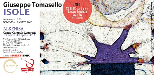 Domenica 13 marzo alle 19:30, negli spazi del Centro culturale letterario "Al Kenisa" di Enna (via Roma, 481), si inaugura la mostra Isole di Giuseppe Tomasello. E' un progetto Nextl'ink. La mostra sarà visitabile fino al 16 aprile.