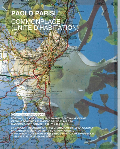 Domenica 29 maggio (ore 11-20), alla Fondazione Brodbeck di Catania (Via Gramignani, 93), prosegue il "Progetto Fortino 1", con la mostra Commonplace (Unite d'habitation) dell'artista Paolo Parisi. Visitabile fino al 10 settembre.