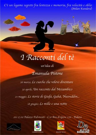 I racconti del tè, ovvero l’arte del racconto coniugata con l’antico rito del tè, ancora in grado di scandire con raffinatezza e lentezza anche il nostro tempo quotidiano. Ultimo di quattro appuntamenti volti a far conoscere e apprezzare l’incontro tra culture diverse che caratterizza e arricchisce la nostra epoca. Storie, racconti, canti, musiche, danze provenienti dalle culture dell’Africa subsahariana, del Maghreb, della Sicilia, si intrecciano durante un rito collettivo. Un dono a noi stessi per riconquistare il piacere di essere qui e ora, assieme, fuori dai ritmi accelerati del nostro tempo. La magnifica cornice dei saloni del restaurato Palazzo Pulvirenti di Pedara si offre come metaforico baobab sotto al quale in Africa, da millenni, si celebra il rito del tè come momento di aggregazione, riflessione, ristoro.
